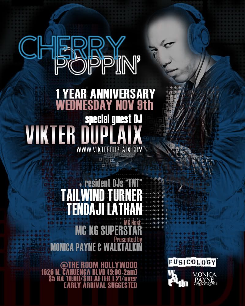 This Wednesday Cherry Poppin celebrates it's One Year Anniversary with DJ VIKTER DUPLAIX and a rare opportunity to hear him rock a party at an intimate location. No stage, no shiny lights, just good music and an expected packed house of CP friends, that simply want to hear any soulful and anything that makes them feel good.