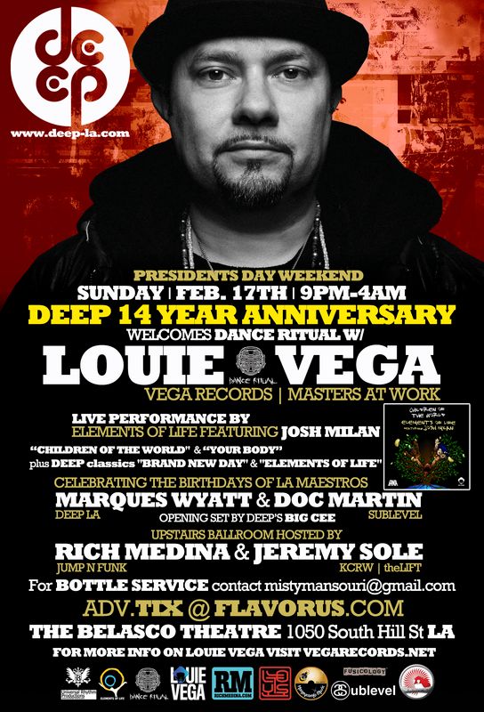 If your flavor is deep soulful house or you have at some point been curious to experience what "deep soulful house" means then look no further than the DEEP 14 year anniversary party with the legendary LOUIE VEGA at the helm.